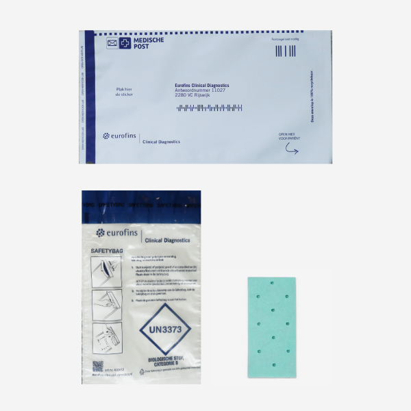 De envelop heeft afhankelijk van uw bestelling het antwoordnummer van het juiste laboratorium.